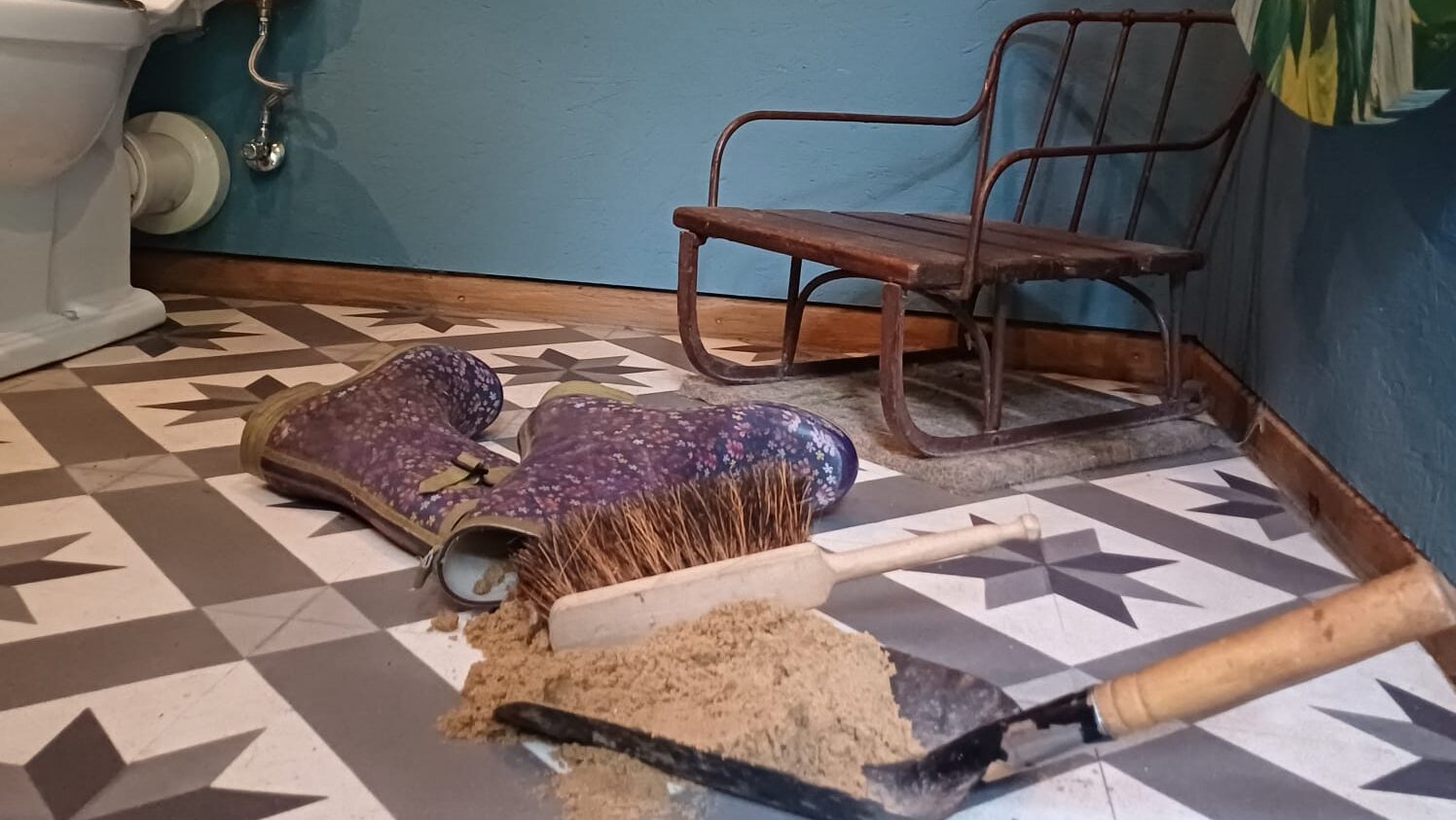„Seit wann müssen denn die Gäste die Toiletten im Gasthaus putzen?“, ich war ehrlich verblüfft. „Es ist nur, weil meine Tochter doch die ganze Zeit in ihrem Sandkasten gespielt hat – und jetzt hat sie sich in ihrer Toilette die Schuhe ausgezogen – ich kann diesen schönen Raum unmöglich so zurücklassen!“